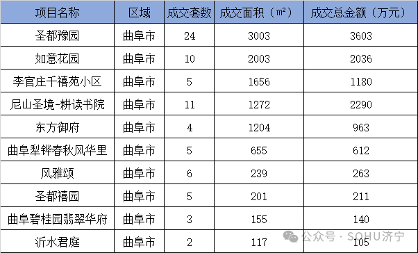 曲阜市住宅销售业绩排名