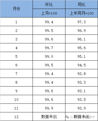 2024年1-11月济宁新建商品住宅销售价格指数