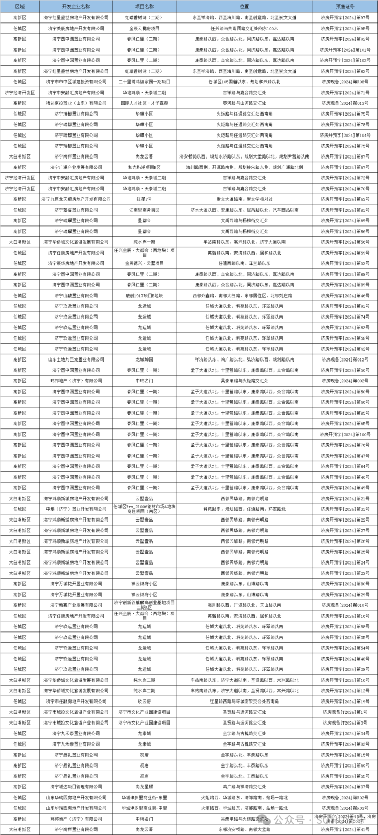 2024年济宁城区房地产市场获预售证项目盘点