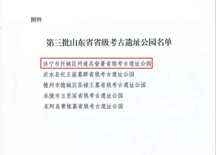 近日,山东省文化和旅游厅公布了第三批山东省省级考古遗址公园名单,任城区河道总督署遗址公园成功入选!