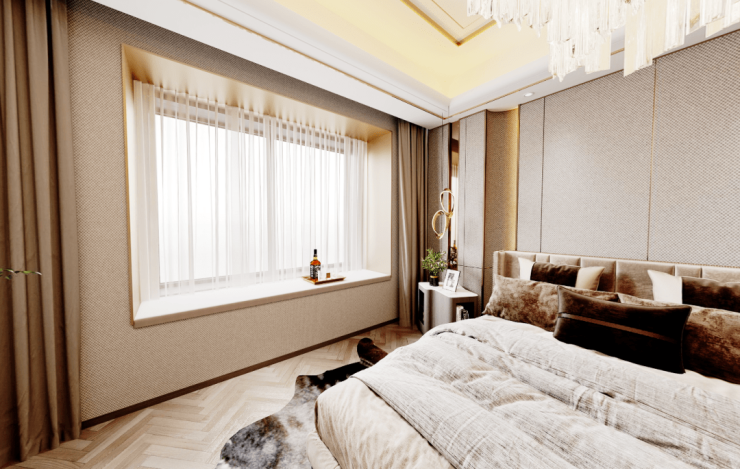 清晨从花香鸟鸣中醒来,温暖的阳光洒在房间里,一个通透明朗的生活空间,指尖触碰的幸福生活。宽大空间,唾手可得,超宽景观飘窗拥揽室外美景,拥有一个朗阔的居住环境,让闲适生活满溢绿意与温暖,使心境更加心旷神怡。