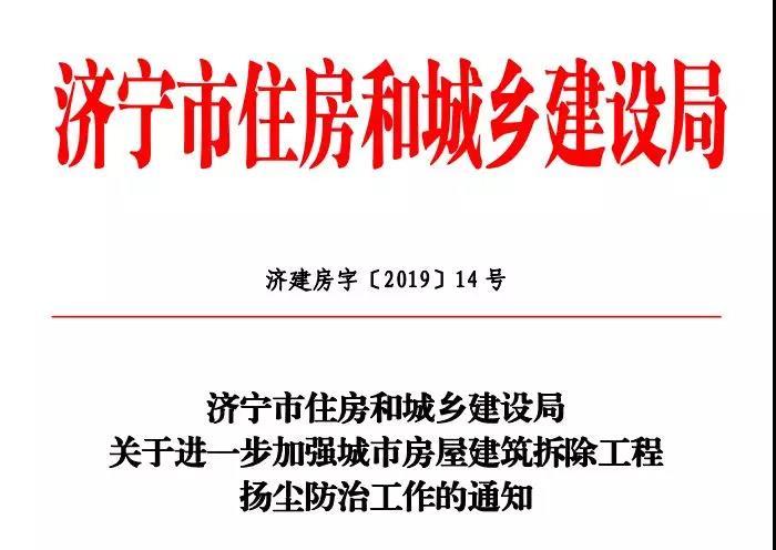 各县(市、区)住房和城乡建设局,高新区住房和城乡建设局、太白湖新区建设局、济宁经济技术开发区开发建设局:为进一步加大对全市城市房屋建筑拆除的扬尘治理力度,做好全市城市房屋建筑拆除工程扬尘治理工作,现就有关事项通知如下。
