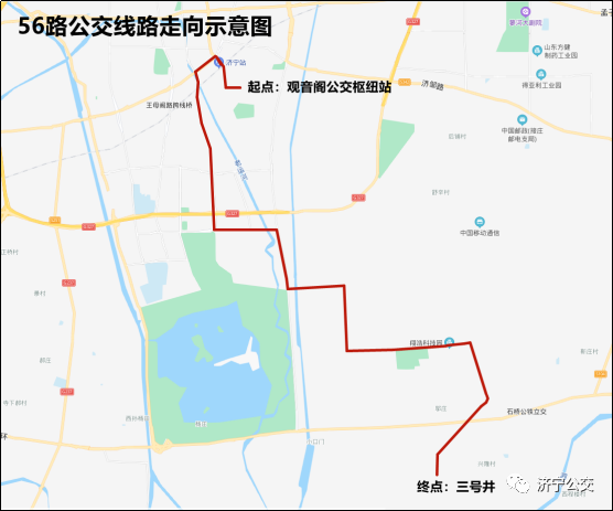 优化调整后途经站点:观音阁公交枢纽站—国光小区—英才高级中学—火车站(西)—口腔医院洋桥院区—南苑社区—运河路高架桥—中山水务—吾悦广场—国投大厦(新城发展大厦)—南外环路口—为民服务中心(运河路)—济宁文化中心—城投鹿港南门—青建白鹭洲—天地北湖湾—石佛洸府河大桥—南阳湖锦鲤园—太白桃园—湖心岛路—农垦路石桥路—南阳湖石桥路—丙坤生态牧场—五彩万象城北门—倪庙村—道口村—秦庄—临菏路幸福河桥—李二庄村—兴隆村—三号井