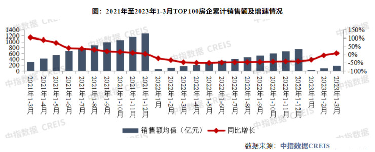 3月31日晚,中指研究院、克而瑞、亿翰智库等多家研究机构发布了2023年1-3月中国房地产企业销售业绩情况。从中指研究院公布的数据来看,一季度TOP100房企销售总额17589.5亿元,同比增长8.2%,自2022年以来首次实现正增长;3月单月销售额环比上升36.7%,同比上升24.6%,继续保持双增长态势。