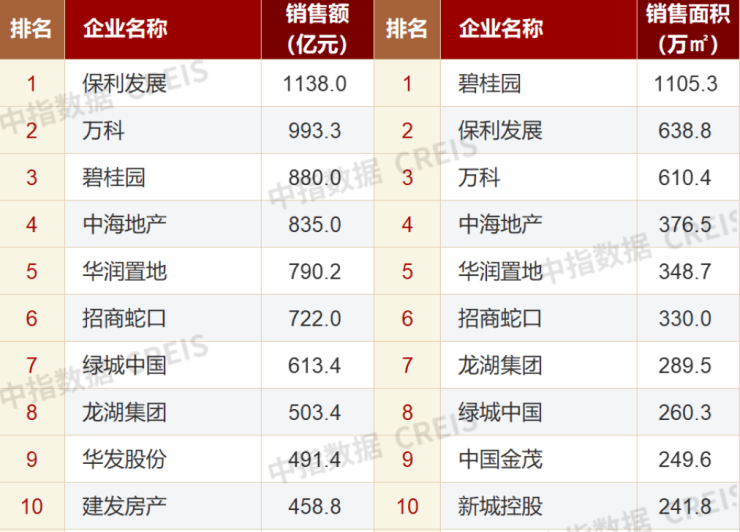 《每日经济新闻》记者注意到,在TOP3阵营中,保利发展率先突破千亿元规模,以1138亿元的销售额继续领跑百强榜;万科和碧桂园分别以993.3亿元和880亿元排在第二、三位。