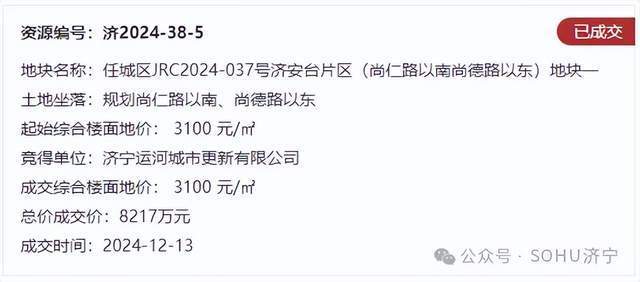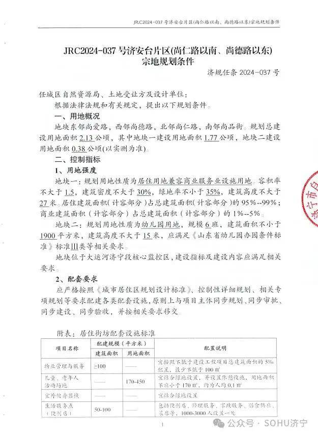 任城区JRC2024-037号济安台片区(尚仁路以南尚德路以东)地块一【济宁运河城市更新有限公司竞得】