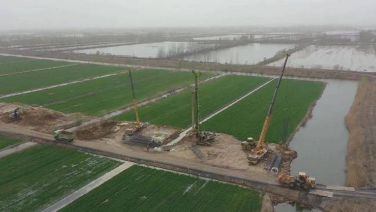 作为济邹高速公路控制性工程的京杭运河特大桥,目前施工设备已经入场,六台旋挖钻机正在进行桥梁桩基施工。京杭运河特大桥设计为双塔双索面斜拉桥,主塔采用A型塔结构。主桥长466米,由于主梁跨度大,无法使用预制箱梁,为加快施工进度,主梁将采用挂篮现浇施工工艺。