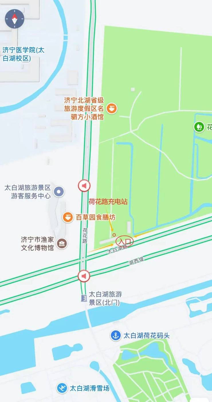 “百姓快充”荷花路充电站位于济宁公交荷花路公交枢纽(太白湖新区荷花路与太白湖路交汇处向东100米路北)。