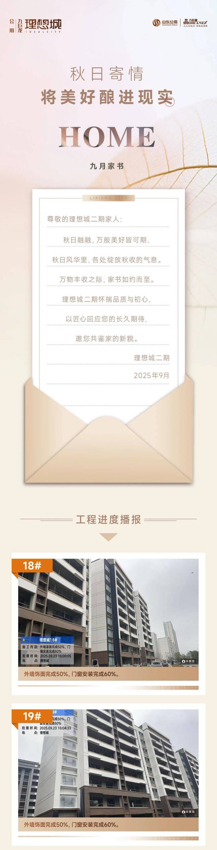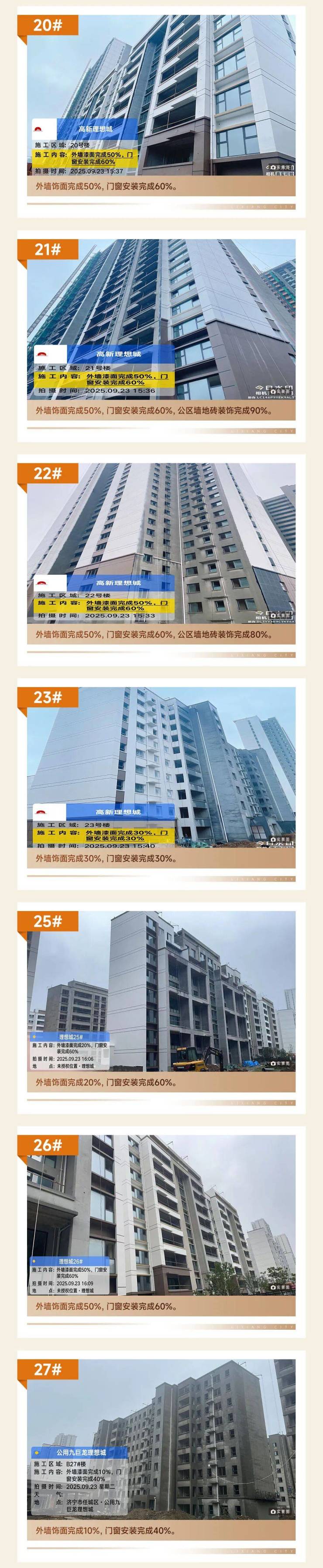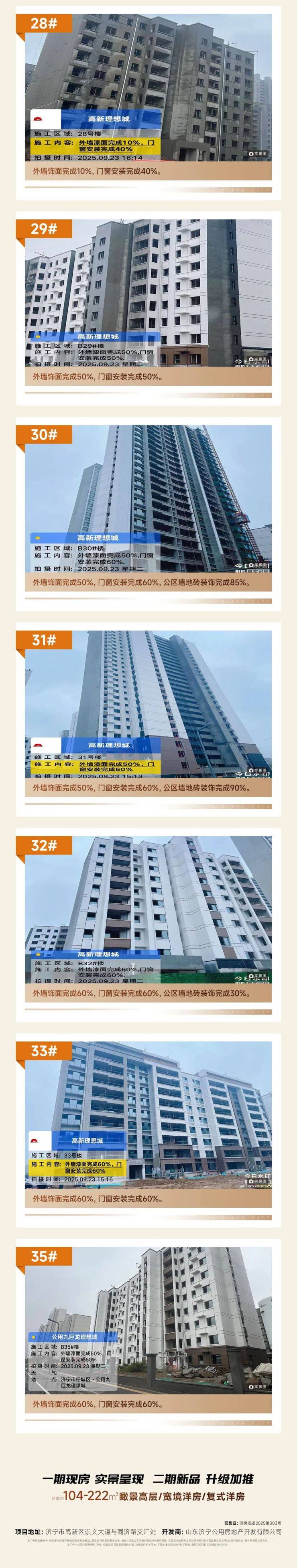 济宁公用九巨龙·理想城二期9月份最新工程进度播报:美学外立面已呈现