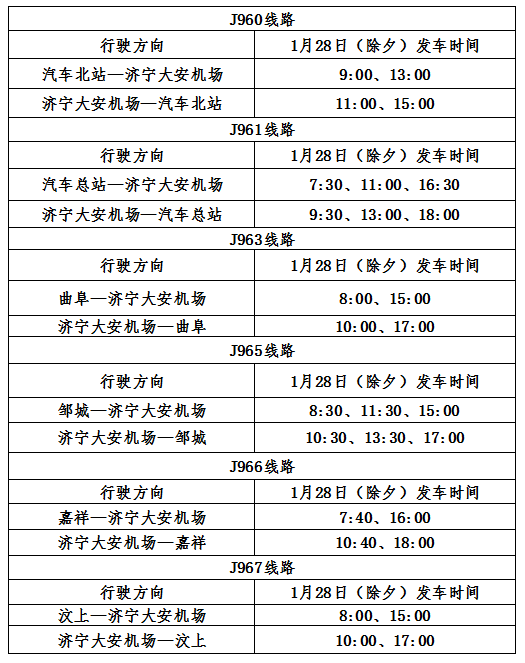 1月28日(除夕)城际公交常规线路上午正常发车,下午12:00之后,弹性发车,具体如下: