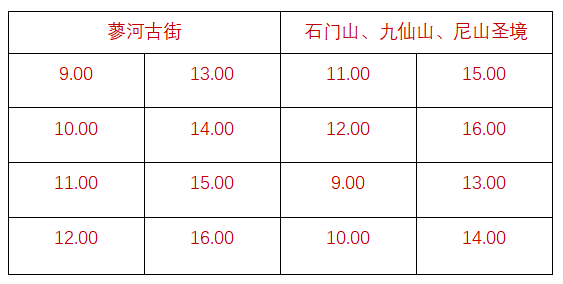 1月30日(年初二)— 2月4日(年初七)首班7:30发车,末班16:00发车。