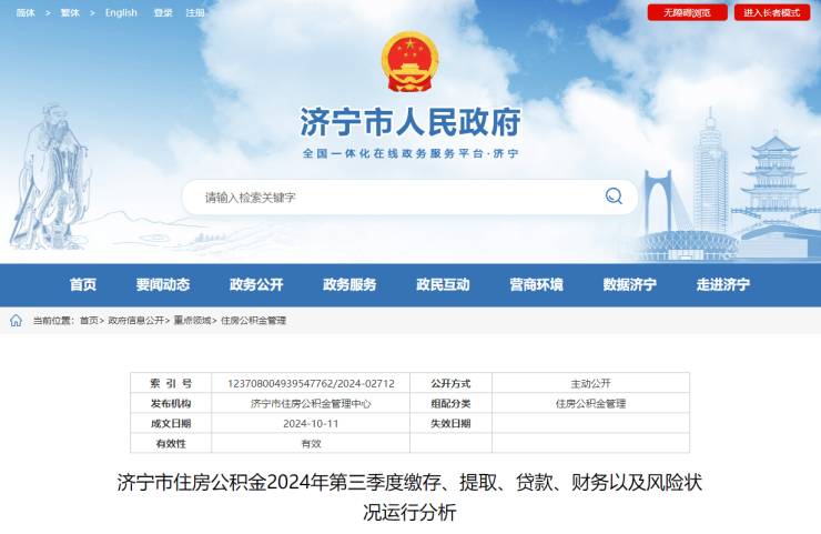 最新!济宁市住房公积金2024年第三季度缴存数据出炉