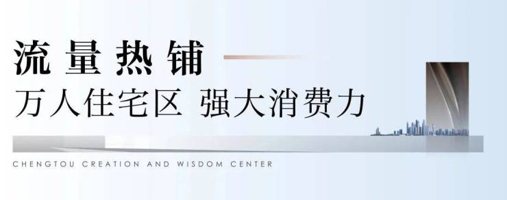 城投·创智中心,社区内上万常住人口,周边三公里内大型社区超10个,常住人口5万人以上(数据来源:百度百科),对内拦截社区内稳定客流,对外辐射全城海量消费客群,全业态灵活旺铺,变现人潮红利;作为写字楼双子塔、花园商墅旁的黄金旺铺,海量商务精英每日在旁高效办公,自带稳定客流闭环,轻松遇见广阔“钱”景。