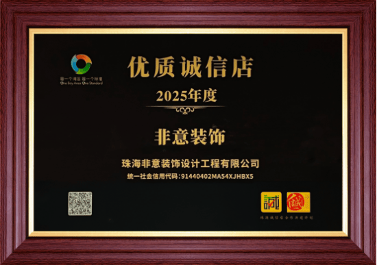 在2025珠港澳诚信店合作共建大会上,首批依据《诚信店评估指标体系(湾区标准)》评选出的诚信商户名单正式发布。在香洲区“诚信消费推荐路线”中,非意装饰与V8有邻整装定制作为家装领域代表企业被重点推荐,成为“诚信香洲”建设中的实践样本,珠海非意装饰与V8有邻荣获“珠港澳优质诚信店”黑金牌牌匾。