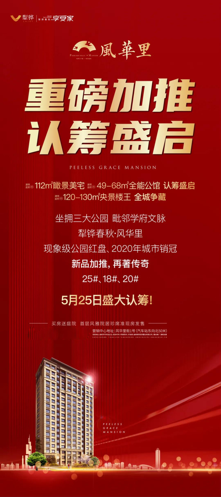 正如犁铧春秋·风华里,“现象级”公园红盘,2020年曲阜楼市三冠王,以前瞻性的产品打造、独具匠心的品质升级,引领全城置业风潮。一期现已优质收官,二期25#住宅、18#、20#公寓新品加推,5月25日盛大认筹!