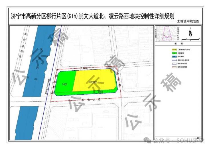 城市绿线:规划范围内规划洸府河滨水绿地1处,用地面积约1.24公顷。崇文大道道路绿线19米,凌云路道路绿线5米。