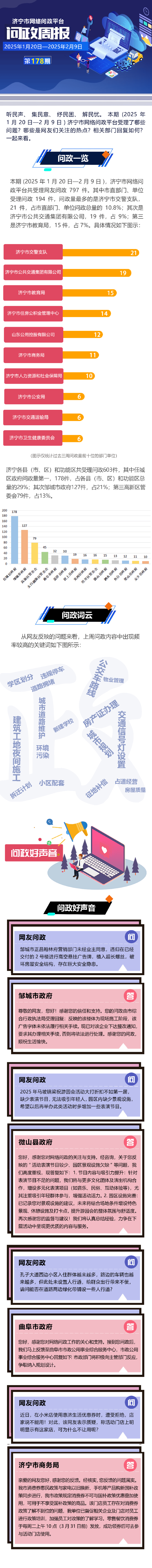 济宁市网络问政平台问政热点(2025年1月20日—2月9日)