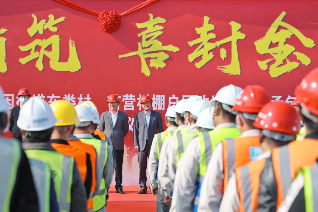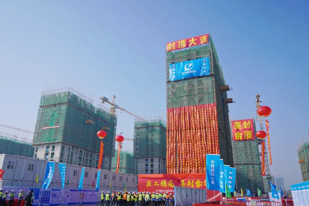 上午11时30分,与会领导共同浇筑最后一方混凝土,标志着王因棚改项目主体一期工程顺利封顶.