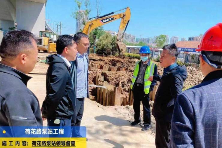 “五一”期间,对泵站改造深基坑开挖现场,组织施工单位在每个深基坑开挖后,安排专职安全员现场盯守,联合监理、设计,根据实际情况优化深基坑支护方法,确保施工安全,有效杜绝了基坑塌方的风险。