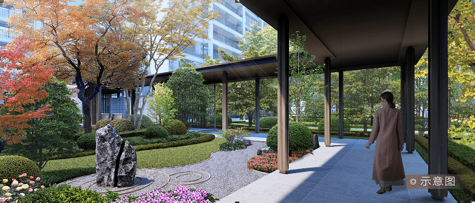 中垠·铂悦府造园在甄选多品种绿植构成唯美景观