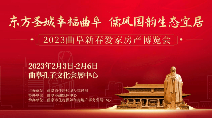 2023曲阜新春爱家房产博览会2月3日-2月6日(正月十四至正月十七)在孔子文化会展中心举行,为期四天。