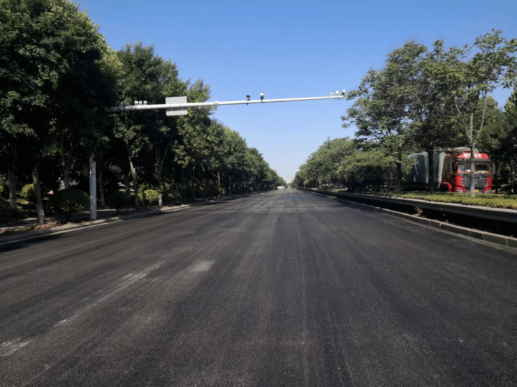 本次维修道路全长4.2km,双向6车道,原路面全幅铣刨罩面施工,计划于6月10日前完工通车。该工程为我区重点保障任务,时间紧、任务重,接到任务以来,责任人员坚守一线、挂图作战,不断压缩时间节点、优化施工方案,在确保交通通行能力的情况下,每天投入施工人员60余人,施工机械设备30余台套,抢抓工期,于6月2日完成全线沥青铺筑和标线施工,提前8天达成通车目标,高标准完成保障任务。