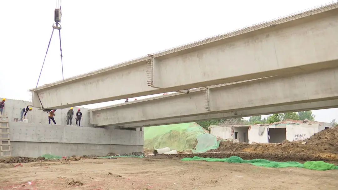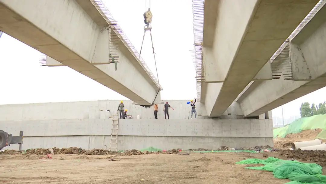 项目建设提速!海川路北跨立交桥项目首片预制箱梁成功架设