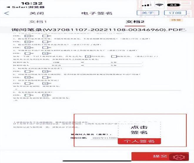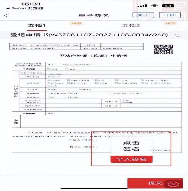 c.手机操作点击签名“不动产登记申请书”和“询问笔录”提交认证