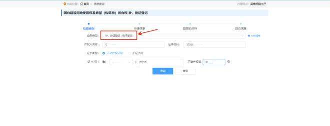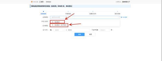 9. 选择补、换证登记或补、换证登记(电子签名)后输入产权人名称、证件代码及证书号等相关信息点击查询