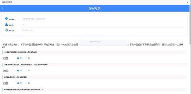12. 文件签署,填写“询问笔录”和“不动产登记申请书”