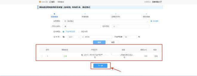 10. 填写信息查询后,勾选对应产权信息点击下一步
