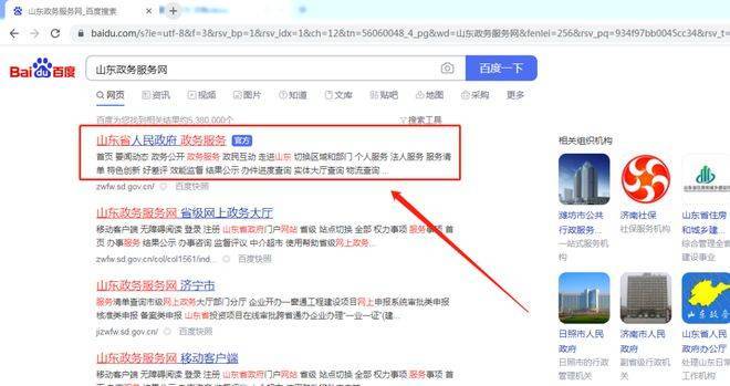 1. 搜索“山东政务服务网”。