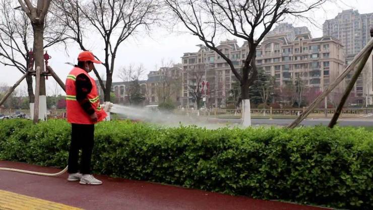 “截至目前,已完成海川路、鸿广路、高新大道、鸿雁湖公园、幸福河公园等‘五路、三公园’90万平方米绿化返青浇灌工作,同时施撒5吨生态肥为苗木生长提供充足养分。”济宁高新区城乡建设和交通局安全监督管理办公室副主任杨恩磊说。