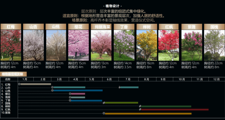 沿着园内长廊前行,园中的自然景观依次呈现,全冠移植臻稀植株,不同时令不同树形的花卉树木,让园中四季皆有花可赏。