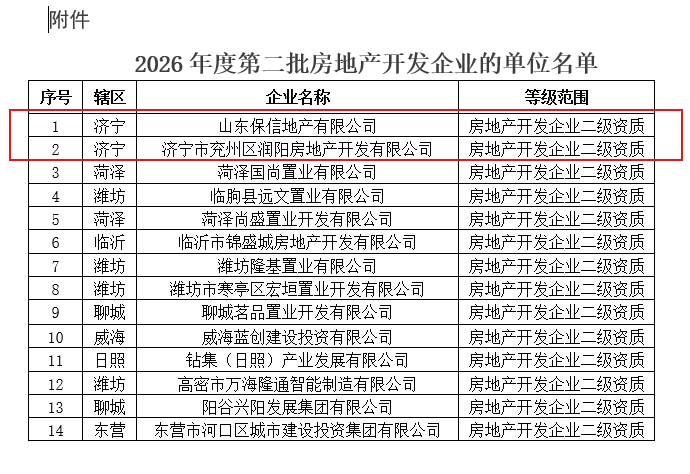 济宁2家!2026年度第二批房地产开发企业资质名单发布
