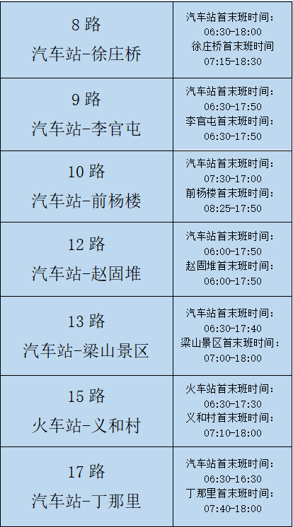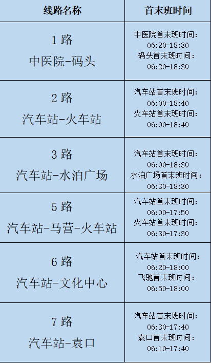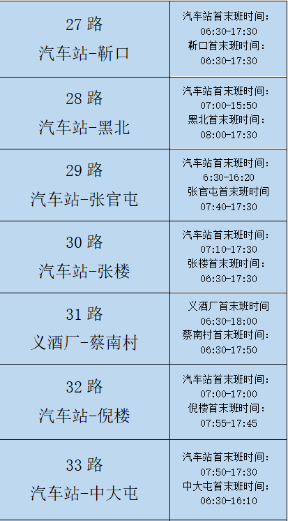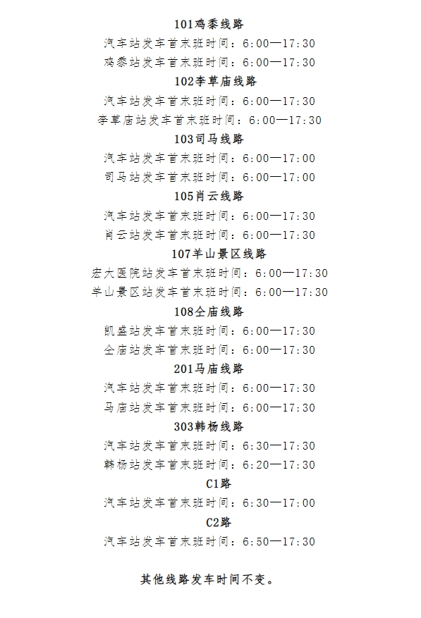 以上为城乡公交更改时间线路,其它城乡线路发车时间不变。