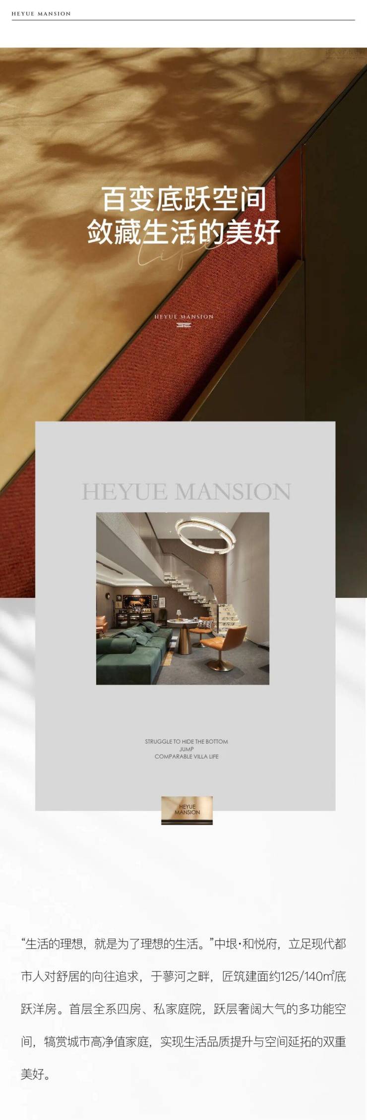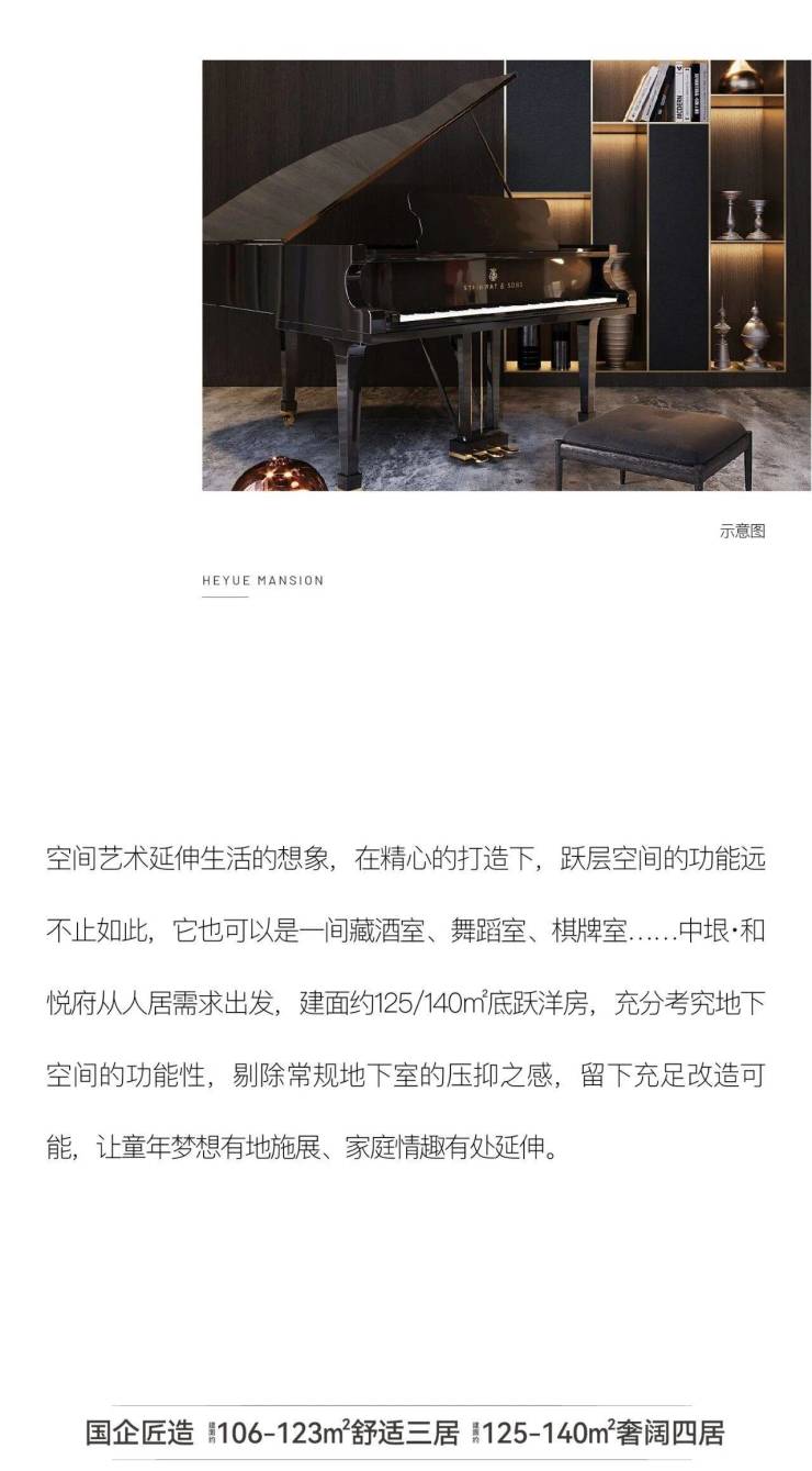 空间艺术延伸生活的想象,在精心的打造下,跃层空间的功能远不止如此,它也可以是一间藏酒室、舞蹈室、棋牌室..…中垠·和悦府从人居需求出发,建面约125/140㎡底跃洋房,充分考究地下空间的功能性,剔除常规地下室的压抑之感,留下充足改造可能,