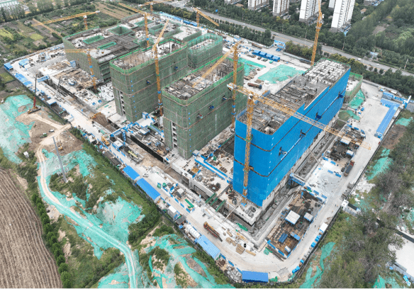 面对紧张的工期目标,在确保疫情防控无隐患的前提下,项目积极强化安全监管和专业培训,科学有序组织施工,积极协调成产物资进场,截至目前,南区综合医疗楼主体结构已封顶,北区科研教学及行政办公楼施工至地上十一层、两栋住院楼施工至地上十层、康养楼主体结构施工至地上九层,传染楼施工至地上一层,制剂楼施工至地上三层,国医堂暂停施工,完成主体工程总量的90%。
