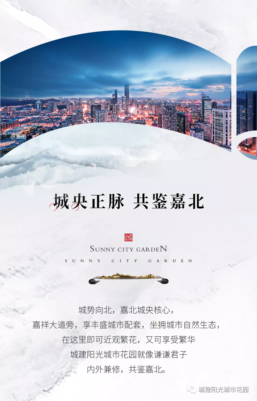 阳光城市花园城势向北,嘉北城央核心,嘉祥大道旁,享丰盛城市配套,坐拥城市自然生态,在这里即可尽观繁花,又可享受繁华。阳光城市花园就像谦谦君子,内外兼修,共鉴嘉北。