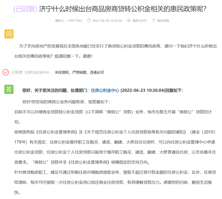 济宁市何时能出台“商转公”贷款业务?较新回应来了