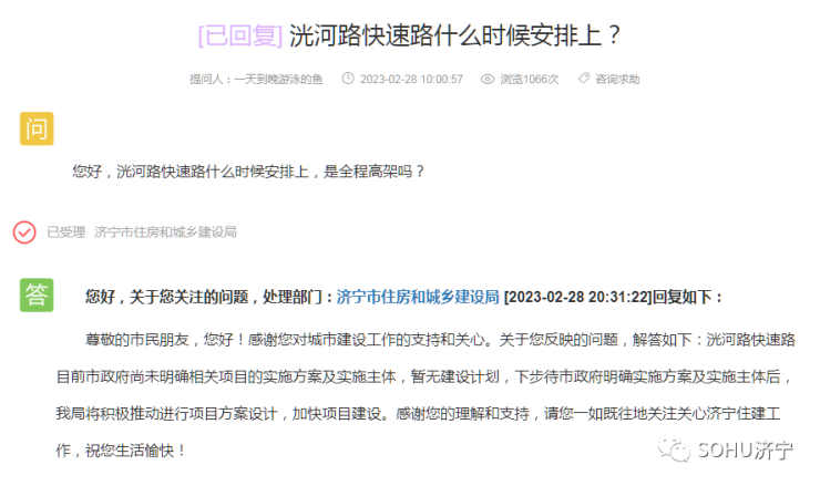 近日,搜狐网济宁小编在济宁市网络问政平台上注意到有网友咨询: 洸河路快速路什么时候安排上,是全程高架吗?