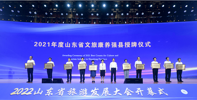6月26日晚,2022山东省旅游发展大会在济宁市尼山圣境开幕,活动现场举行2021年度山东省文旅康养强县授牌仪式。济南市莱芜区、青岛市市南区、滕州市、烟台市蓬莱区、青州市、曲阜市、泰安市岱岳区、荣成市、沂水县、齐河县共10个县(市、区)被确定为2021年度山东省文旅康养强县。