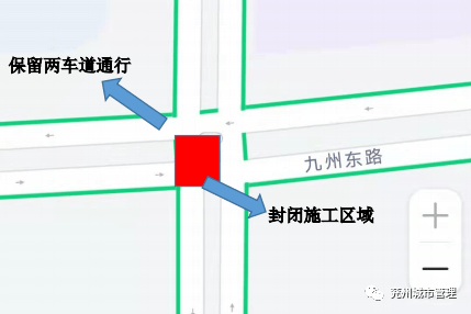 封闭时间为:2022年6月3日至6月5日,封闭期间该路口东西方向及南北方向的路面通行宽度缩窄,九州路过西御桥路路口由西向东车辆只可直行,过往车辆请按照交警和疏导人员指挥及交通提示标识通行,因工程施工带来的不便,敬请广大市民给予谅解和支持!