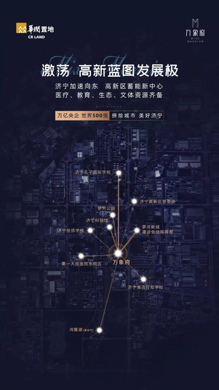 华润置地·万象府项目坐落于济宁市高新区,交通发达,地处孟子大道、海川路交汇处,毗邻城市动脉,接驳万千繁华境,多维交通路网,纵横生活主场。