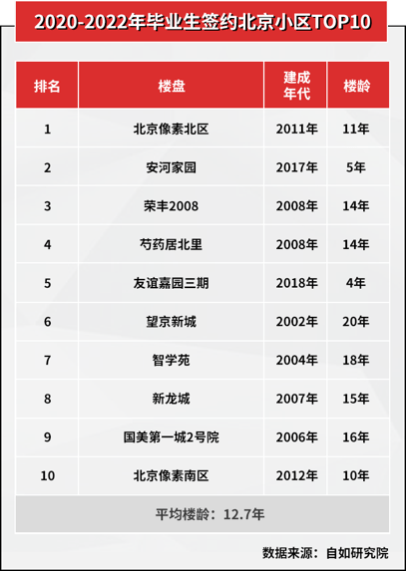 我们从3年的数据中摘出来了9个城市毕业生签约最多的小区top10。可以看出新一线城市毕业生签约Top10小区的平均年龄比一线城市的小区要平均“年轻”8年左右