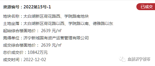 地块一:太白湖新区荷花路西、学院路南地块【济宁新城国有资产运营管理有限公司】