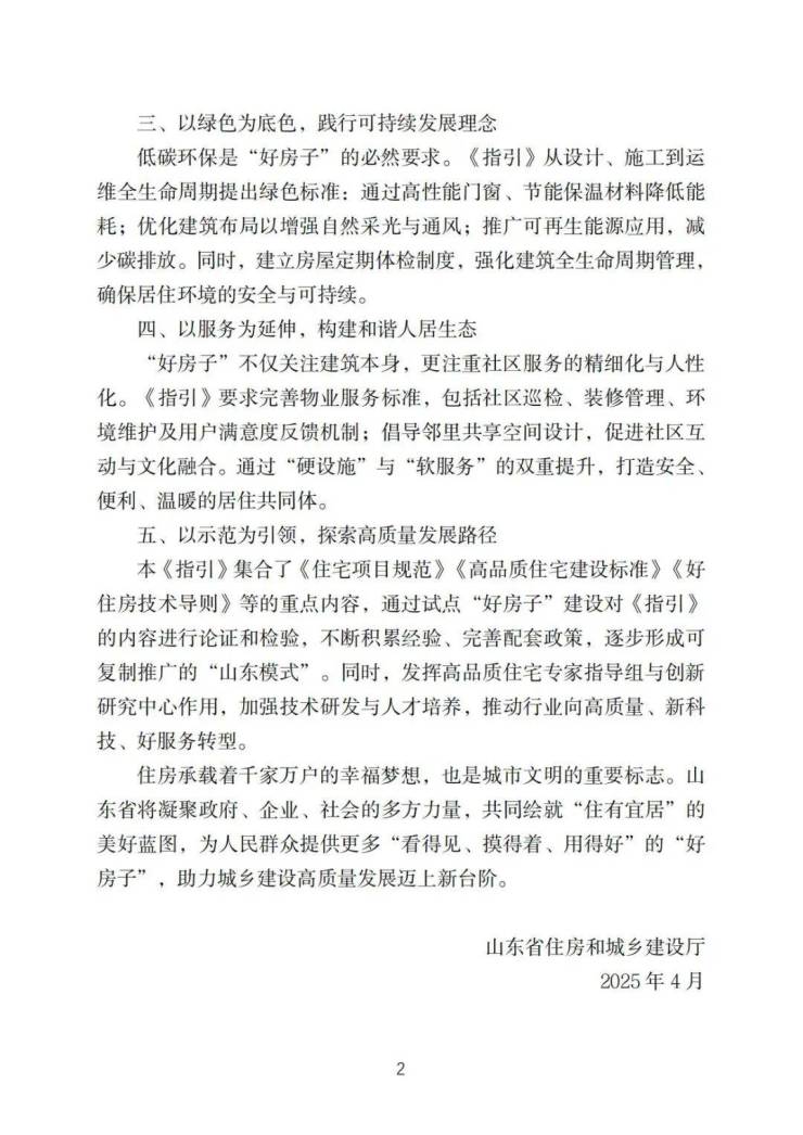 为深入贯彻省委、省政府关于“好房子”建设部署要求,落实国家和省有关标准规范,引导“好房子”建设,进一步提升全省住宅品质,我厅根据《住宅项目规范》《高品质住宅建设标准》《好住房技术导则》相关内容,编制了《山东省好房子建设标准指引》,作为“好