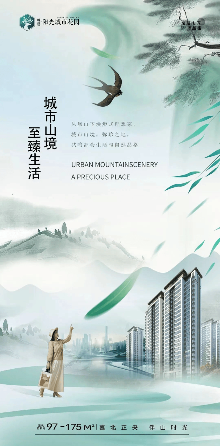 阳光城市花园凤凰山下漫步式理想家,城市山境,弥珍之地,共鸣都会生活与自然品格。建面约97-175㎡嘉北正央,伴山时光。