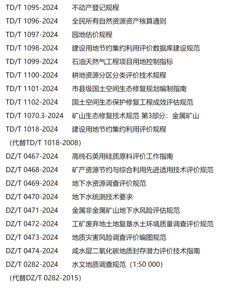 《不动产登记规程》等19项行业标准已通过全国自然资源与国土空间规划标准化技术委员会审查,经2024年第3次部长办公会审议通过,现予批准、发布,自2024年9月1日起实施。标准编号及名称如下:
