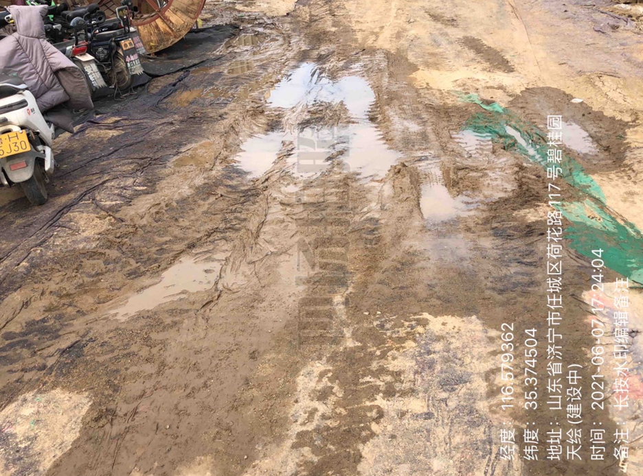 存在问题:1、施工入口主要道路未硬化;2、施工现场混乱,物料未按要求堆放;3、无洗车设施;4、地面浮土、积土严重;5、垃圾未及时清理。